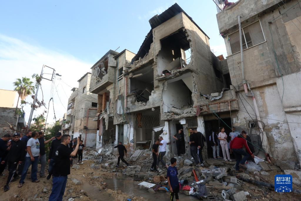 11月14日,人们在约旦河西岸城市图勒凯尔姆查看废墟残骸。