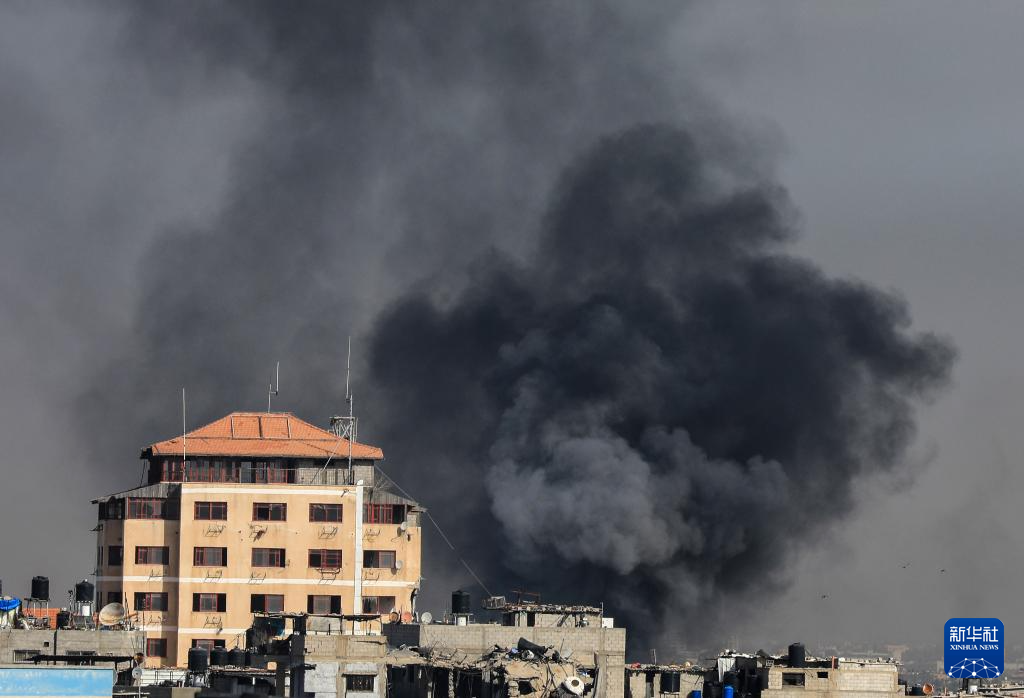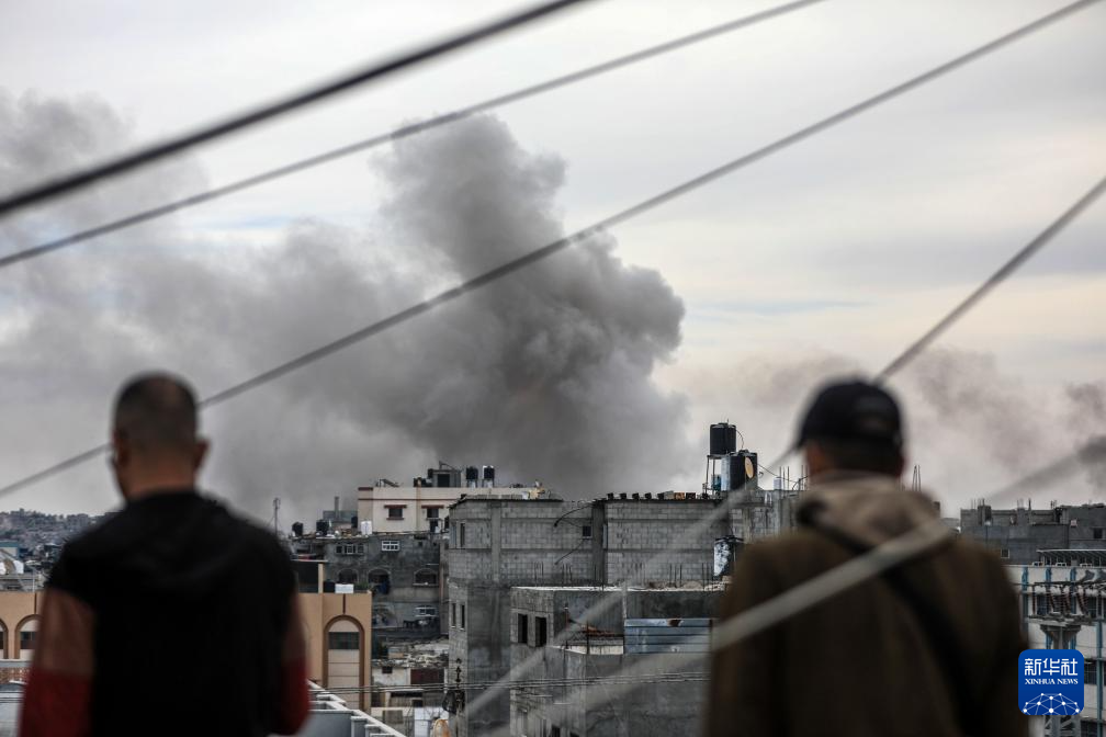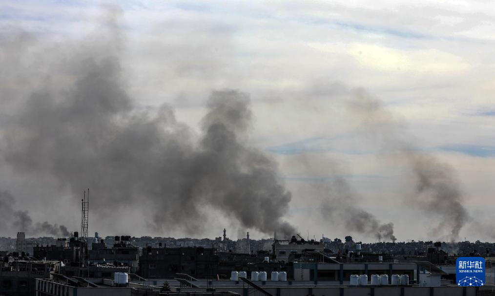 1月21日,加沙地带南部城市汗尤尼斯在遭遇以军空袭后升起浓烟。