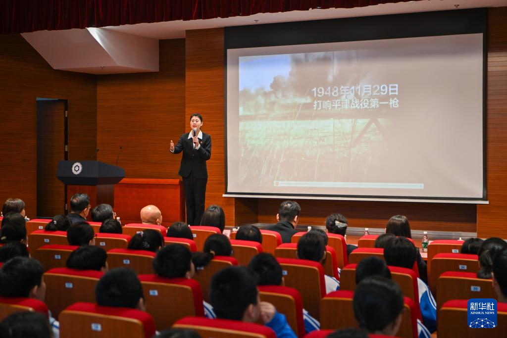 当日,天津市河西区退役军人事务局联合天津市第四中学,在天津市中小学春季新学期开学首日开展以“初心向阳·从‘新’起航”为主题的开学第一课。课堂邀请了91岁的新中国第一代飞行员周修平、天津市烈士陵园讲解员刘凯涵,为中学生讲述真实战斗故事与烈士光荣事迹。