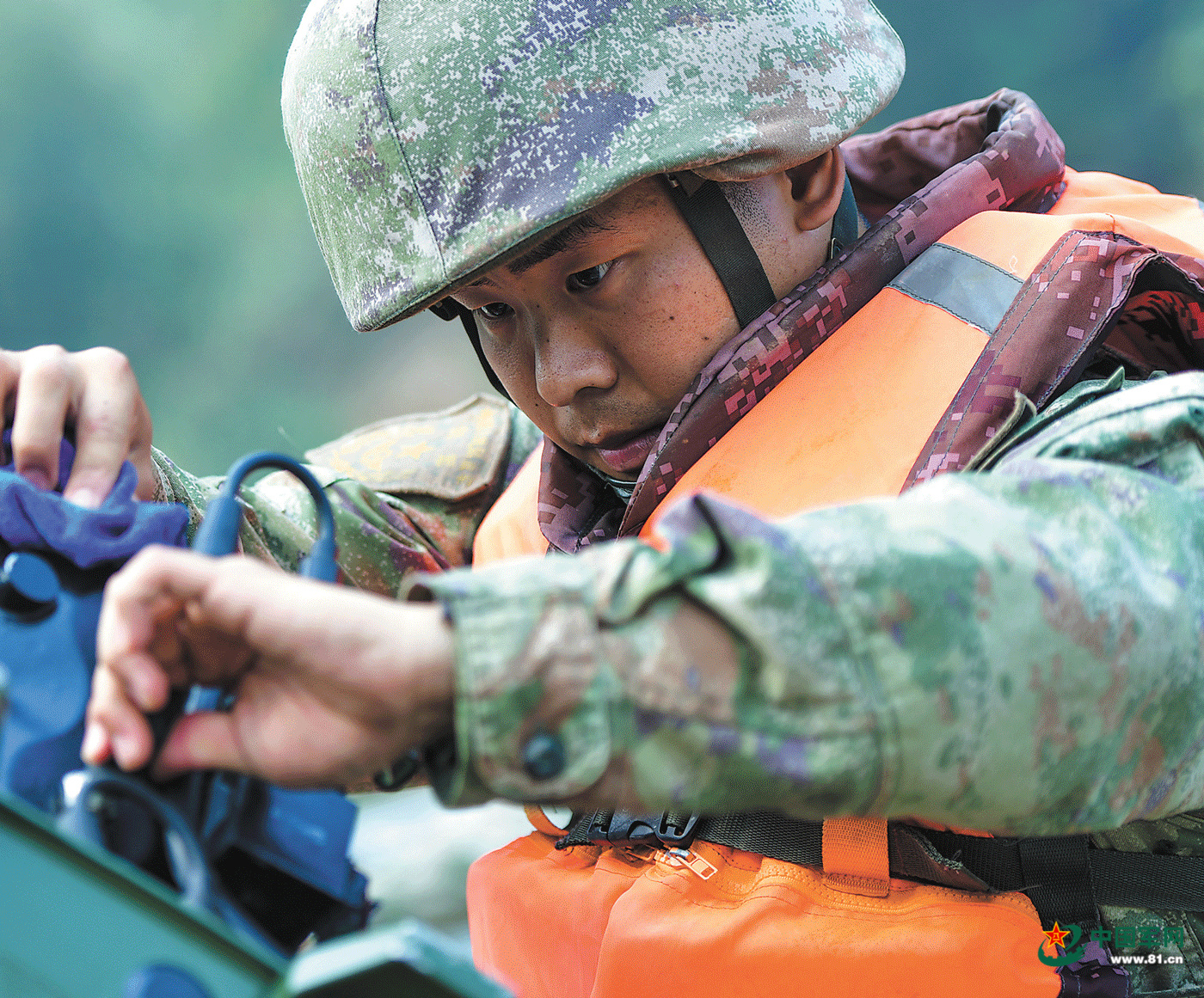 4月8日,晨曦初露。陆军某旅工兵分队全副武装抵达山野丛林间某水域,开展冲锋舟操作手训练考核。