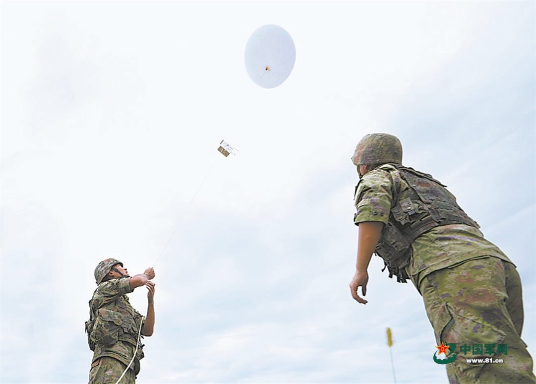 气象分队施放探空气球.