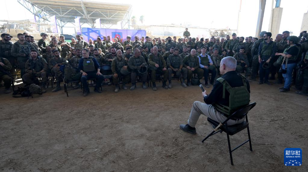 以色列总理内塔尼亚胡7月18日表示,以军在加沙地带南部城市拉法对巴勒斯坦伊斯兰抵抗运动(哈马斯)的军事压力“有助于推进停火协议的达成”。这是以色列总理内塔尼亚胡当日视察部队的画面。