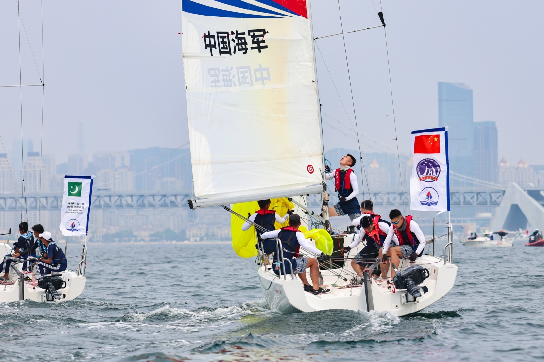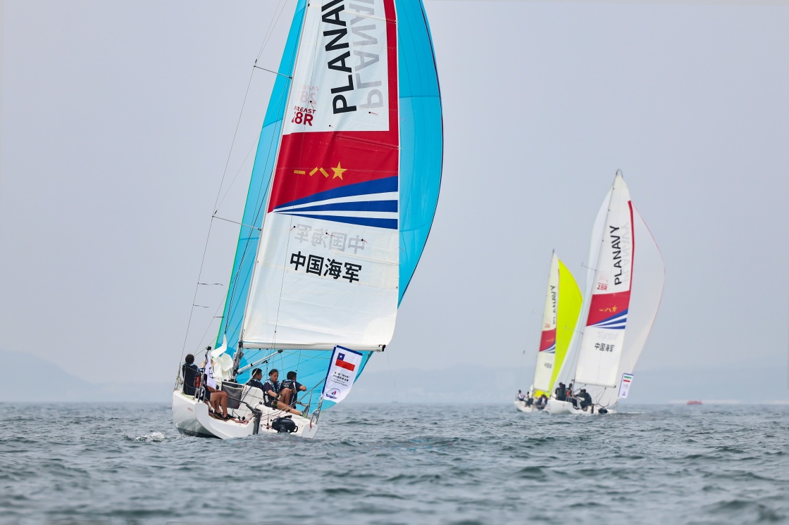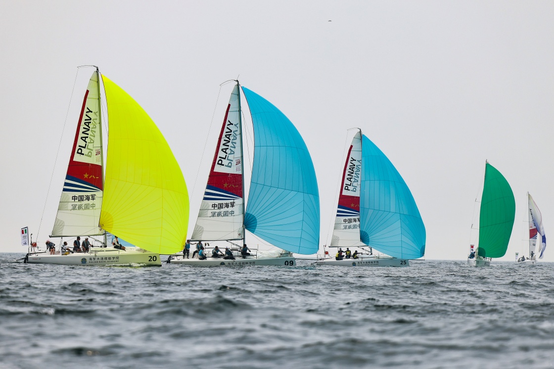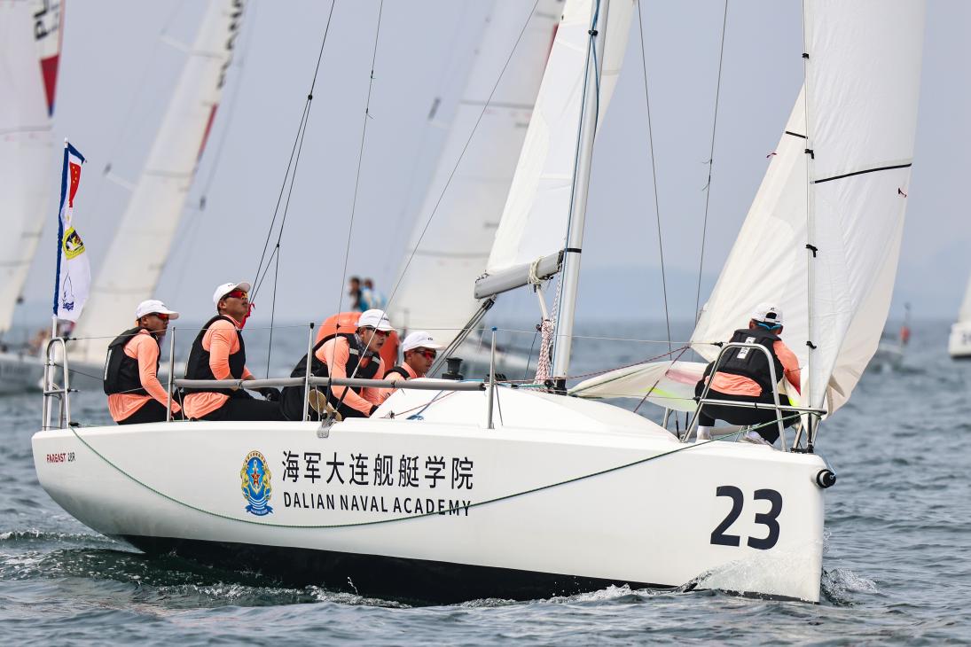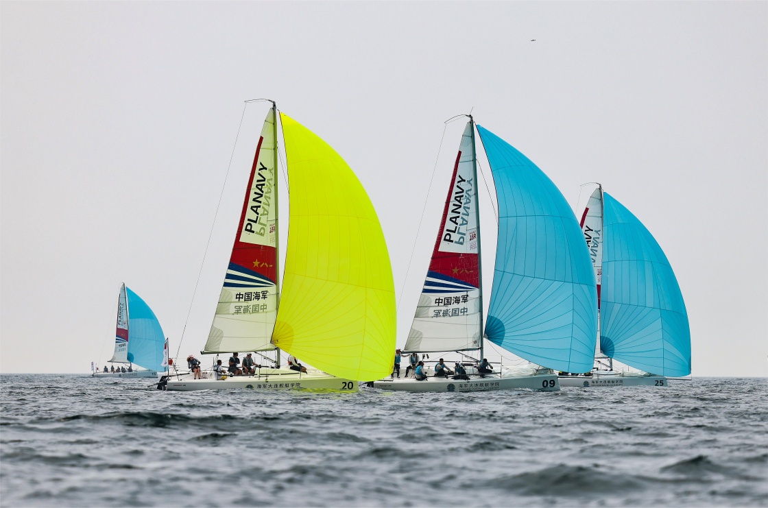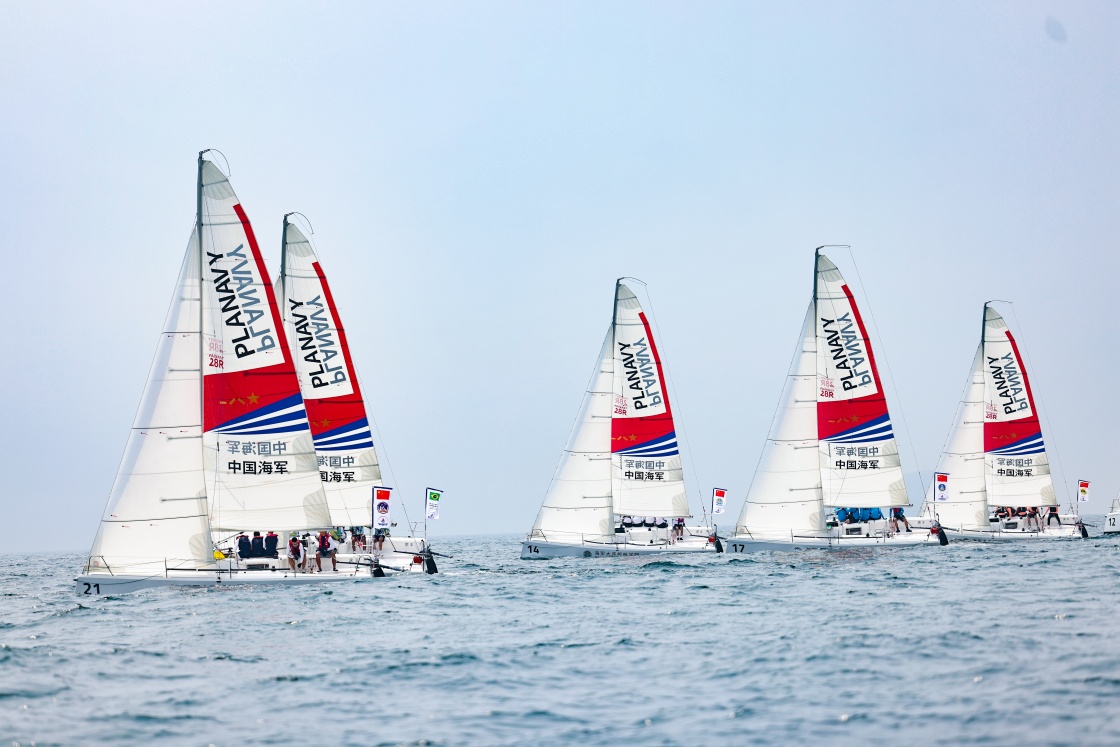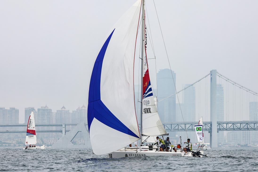 这是7月24日拍摄的参加首届“海军杯”国际帆船邀请赛的中国海军工程大学代表队。新华社发(李昊天 摄)