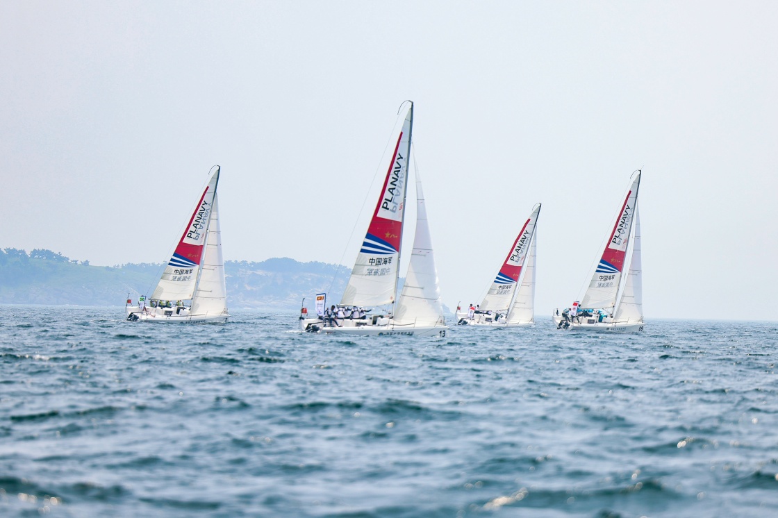 这是7月24日拍摄的参加首届“海军杯”国际帆船邀请赛的中国海军航空大学代表队。新华社发(李昊天 摄)