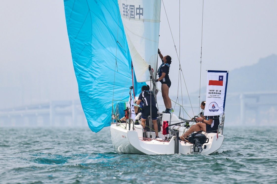 这是7月24日拍摄的参加首届“海军杯”国际帆船邀请赛的智利代表队。新华社发(李昊天 摄)