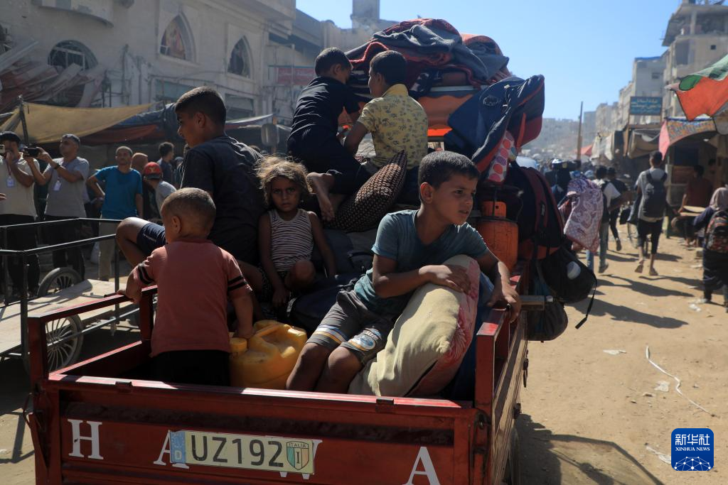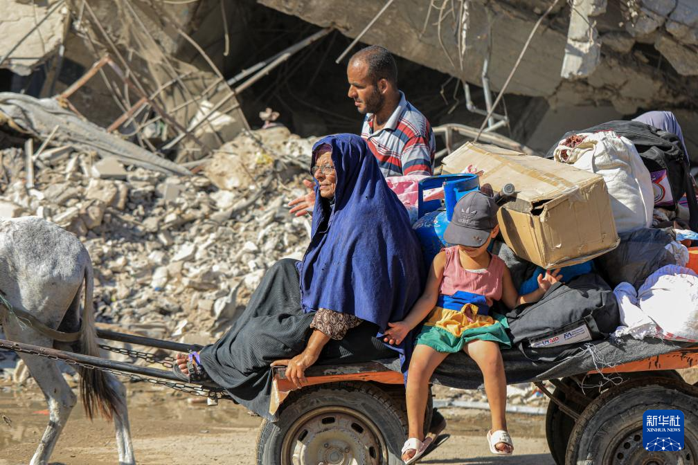 8月8日,在加沙地带南部城市汗尤尼斯东部地区,人们在以色列发出疏散警告后撤离。