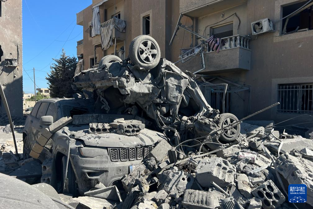 这是9月26日在黎巴嫩南部萨萨基耶镇拍摄的以军空袭后造成的破坏。