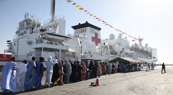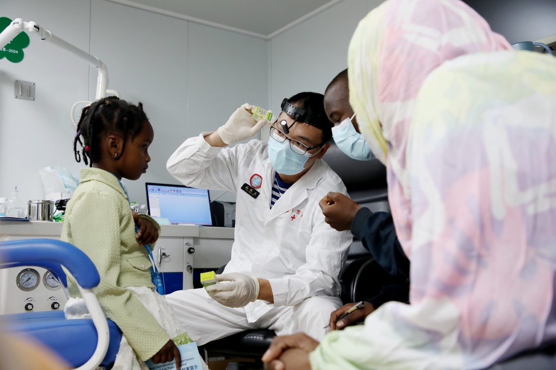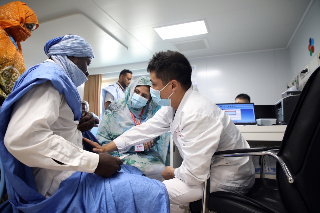 11月4日,中国海军“和平方舟”号医院船在毛里塔尼亚首都努瓦克肖特开展医疗服务。新华社发(刘志磊摄)