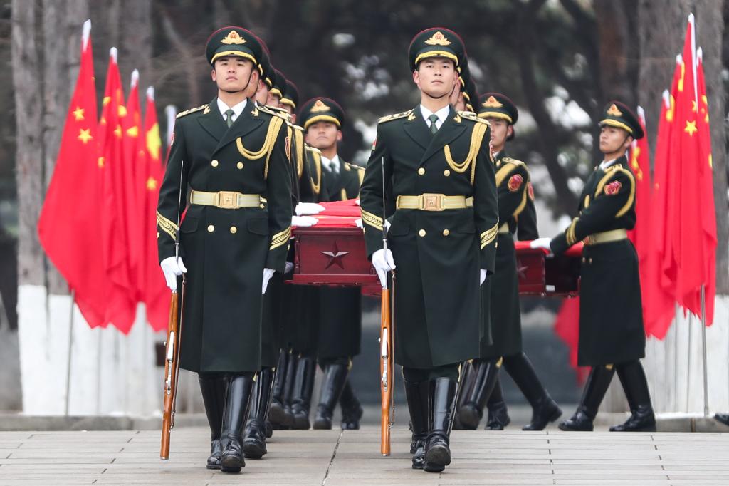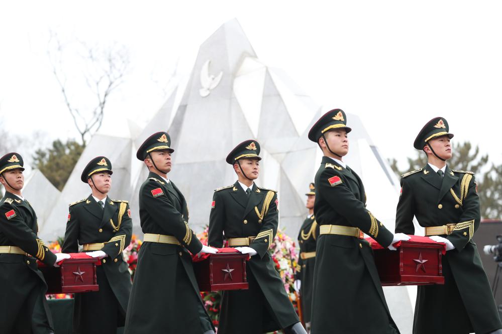 11月29日上午,第十一批在韩中国人民志愿军烈士遗骸安葬仪式在沈阳抗美援朝烈士陵园举行。