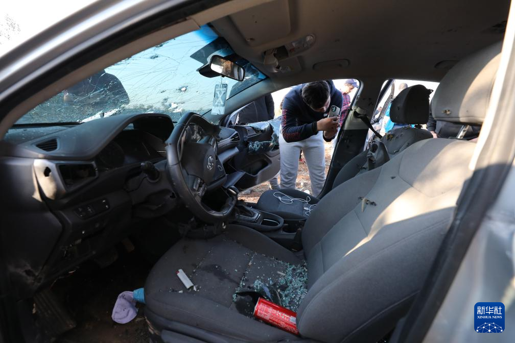 12月1日,在约旦河西岸北部杰宁地区的赛尔镇,当地民众查看在以军行动中被损毁的车辆。