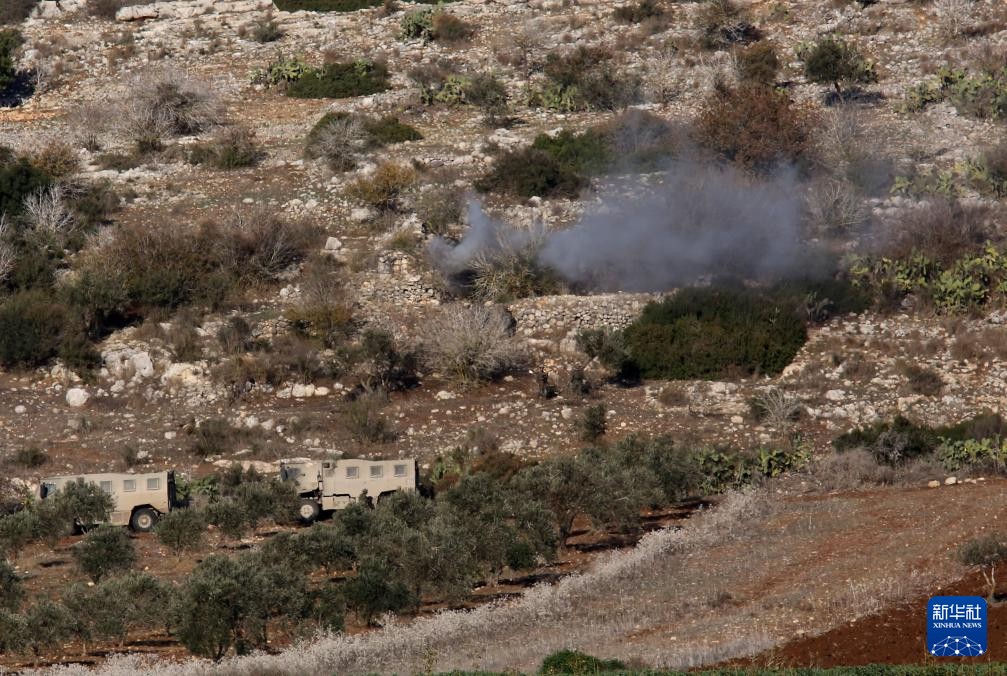 这是12月1日在约旦河西岸北部杰宁地区的赛尔镇开展行动的以军车辆。