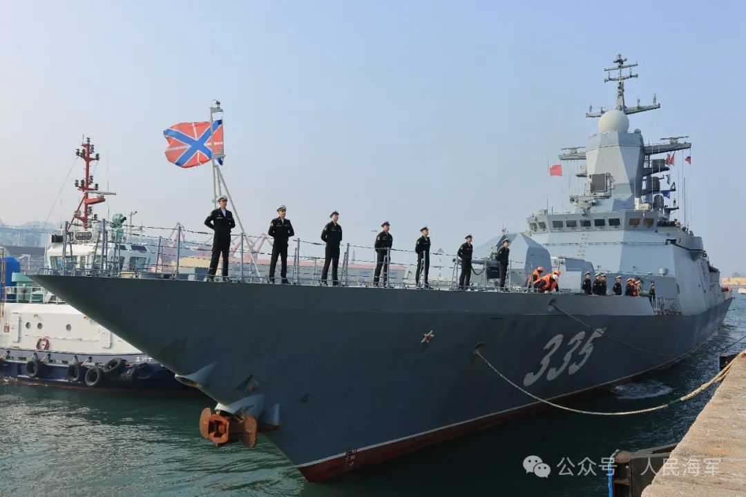 12月5日上午,在中国海军盐城舰的引导下,俄罗斯海军由“响亮”号、“凛冽”号、“阿尔塔尔·琴坚扎波夫”号护卫舰和“佩琴加”号中型海洋油船组成的舰艇编队抵达青岛某军港,开始为期5天的友好访问。