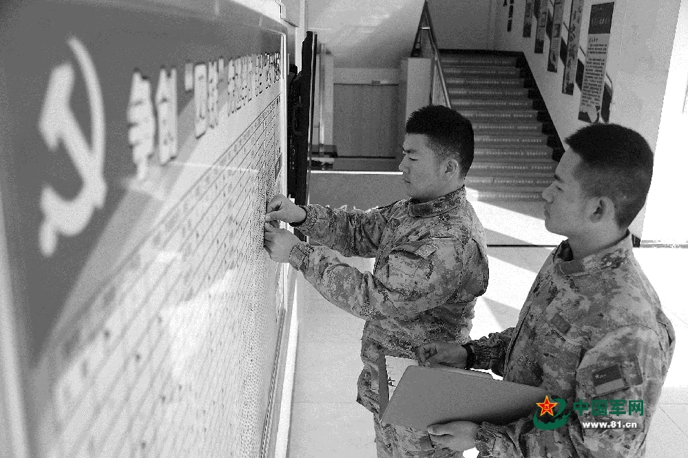 近日,空军某旅某连依据相关法规要求,在“双争”活动中对官兵进行民主测评并公示评比结果。王彬 摄