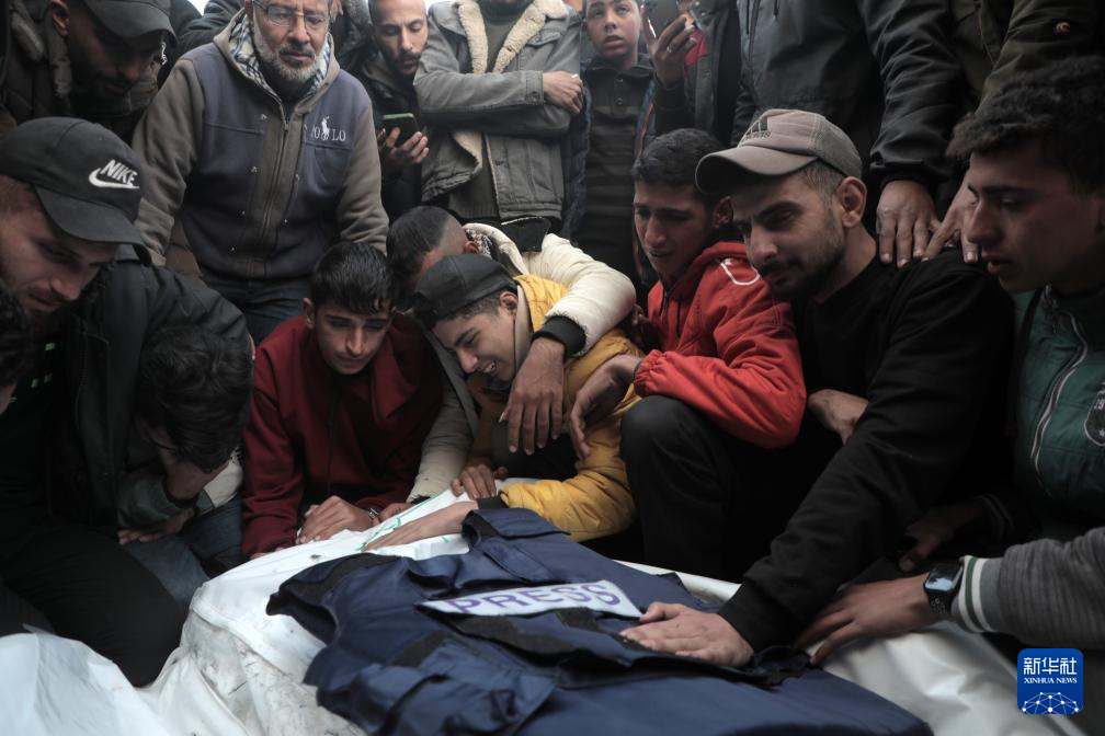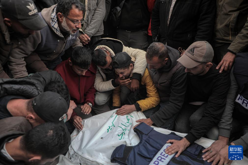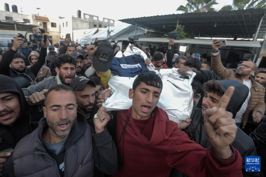 12月26日,在加沙地带中部代尔拜拉赫,当地民众悼念在以军袭击中丧生的记者。