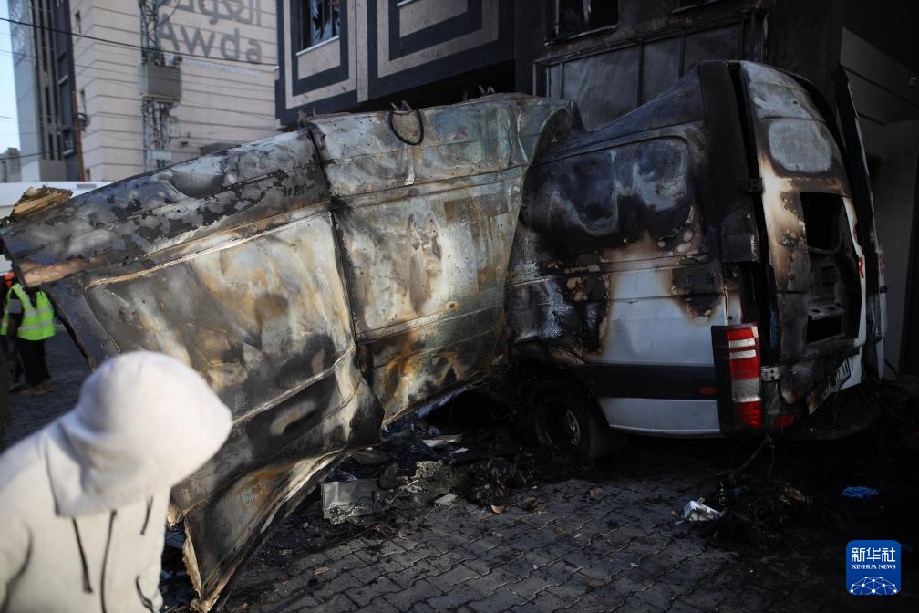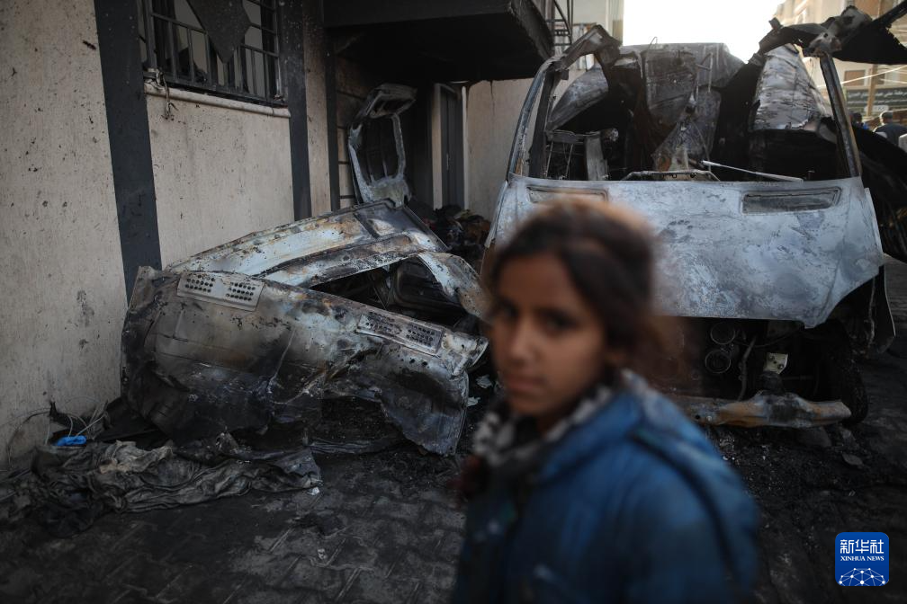 这是12月26日在加沙地带中部代尔拜拉赫拍摄的在以军袭击中损毁的车辆。