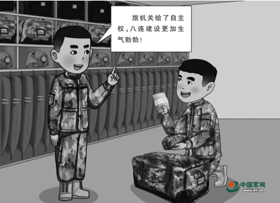 这里举一个例子。去年记者第二次去某连采访,发现战士内务柜上张贴的照片,由此前连队统一要求的证件照换成了自选的生活照,其中有全家福,有和女朋友的合影,还有入伍前的自拍……面对“为什么不再统一要求张贴证件照”的提问,该连连长反问了一句:“您不觉得战士们每天开柜子时看到自己最珍贵的照片,心情更舒畅吗?”他说,上级机关对此并没有统一要求,连队就应该从实际出发进行决策。最后,大家达成一致,只规范位置和尺寸大小,至于放什么照片,战士自己说了算。