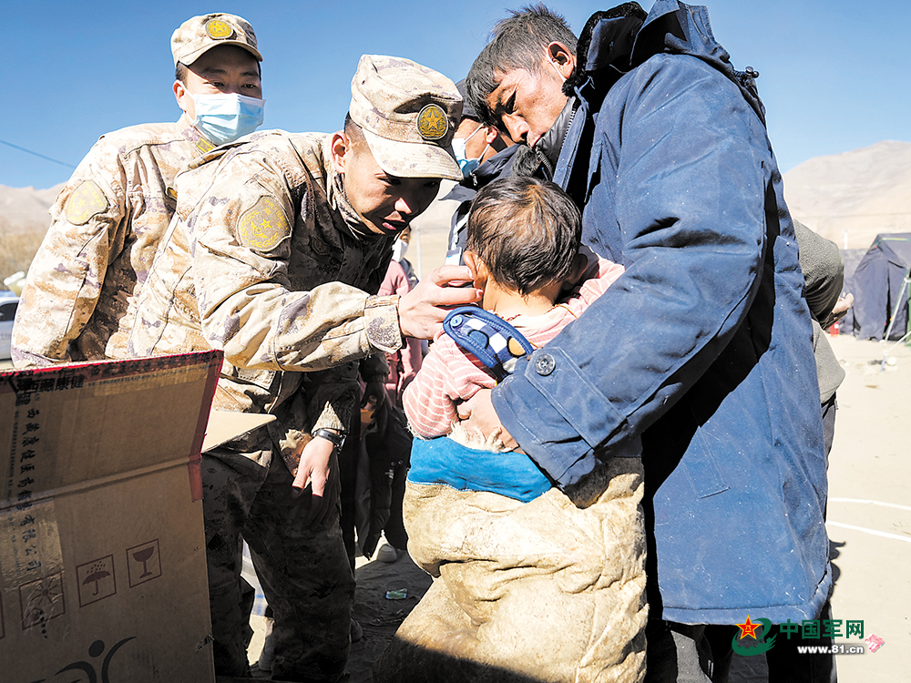 “谢谢你们救了我的孩子!”8日上午,西藏定日县长所乡茶江村村民阿律,看到西藏军区某边防团指导员江献正带领官兵挨家挨户搜救,赶忙上前握住他的手连声道谢。