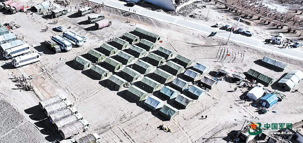 1月8日,西藏日喀则军分区某部官兵在措果乡集中安置点开展救援保障工作。图为安置点外景。左南星摄