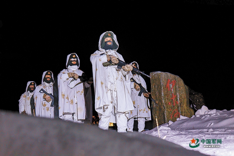 此刻,室外滴水成冰,记者看了一眼温度计:零下45摄氏度。哨兵身上穿着厚厚的大衣,但寒风仍然刺骨。不一会儿,他们的面罩上便凝起一层霜,连睫毛上也挂着几片。银霜在月光的辉映下,衬着他们清澈的眼神,更添几分专注与坚毅。
