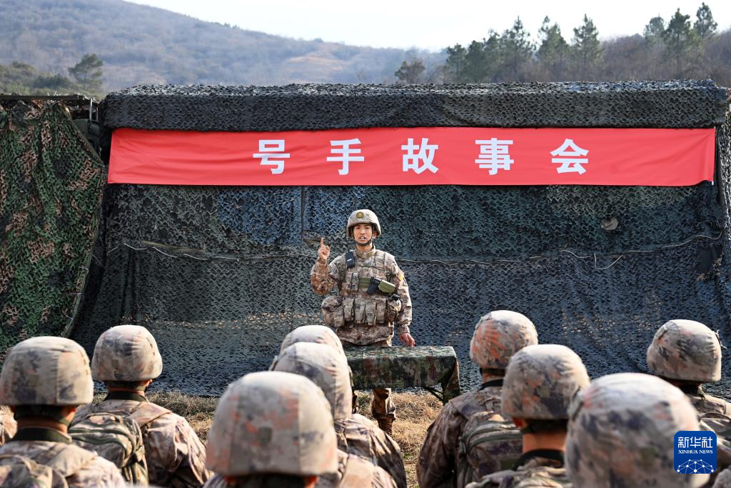 火箭军某旅发射营教导员张平坤将教育课堂搬到训练场上(资料照片)。新华社发(刘明松 摄)
