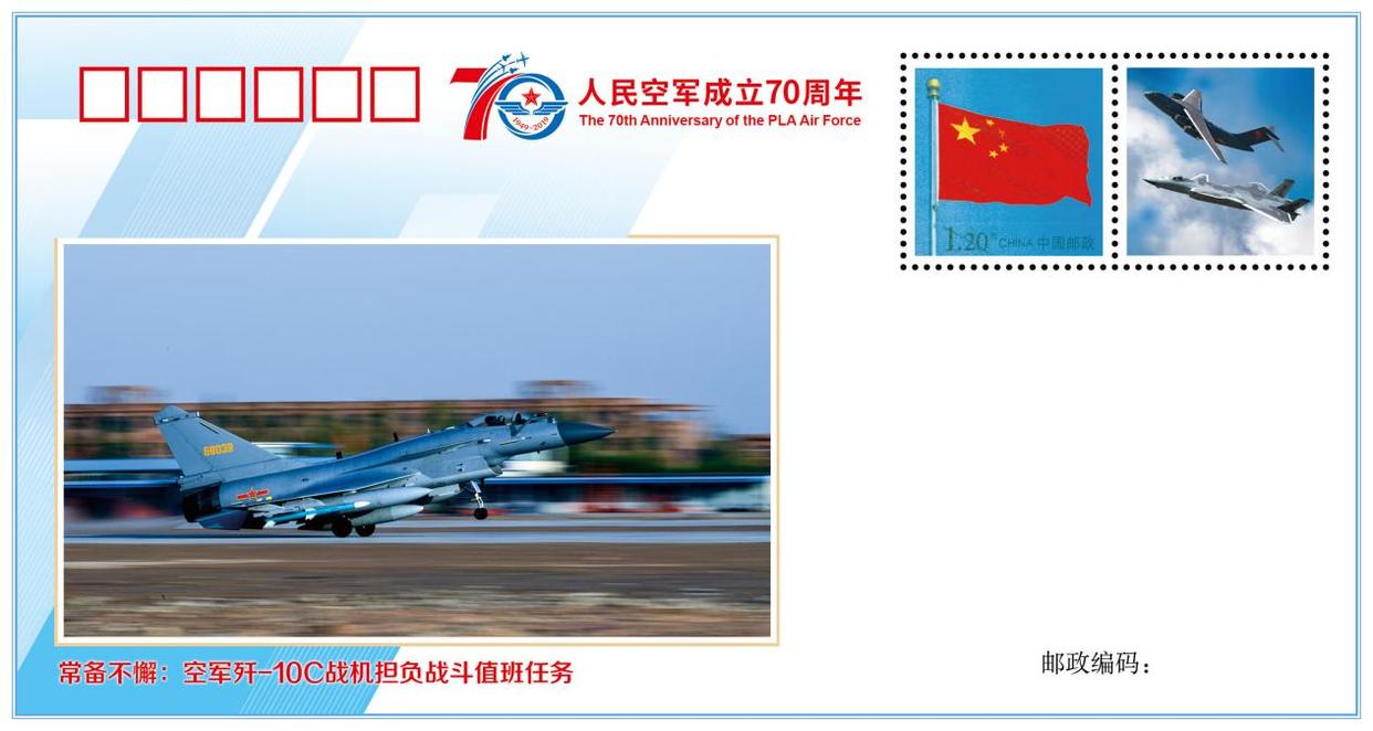 歼-10C战机担负战斗值班纪念封
