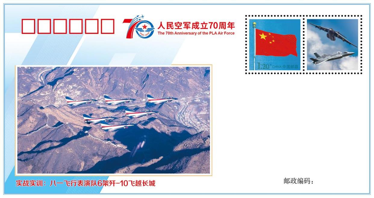 歼-10表演机编队飞越长城纪念封
