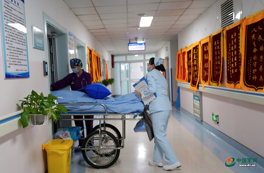 张瑛护送患者转入重症监护病房。中国军网记者 林诗清 摄