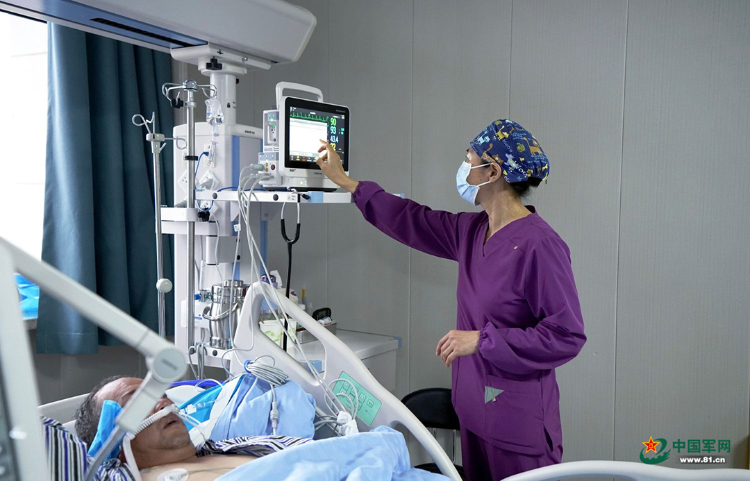张瑛查看患者监测仪器数据。中国军网记者 林诗清 摄