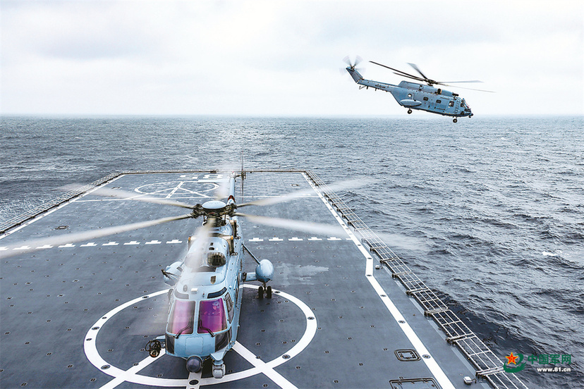 我舰载直升机从祁连山舰甲板起飞。解放军报特约通讯员乔晨曦摄