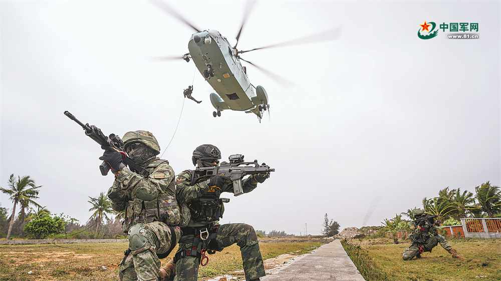 3月31日,中泰“蓝色突击-2025”海军联合训练展开狙击战术、野战生存和潜水等科目训练。