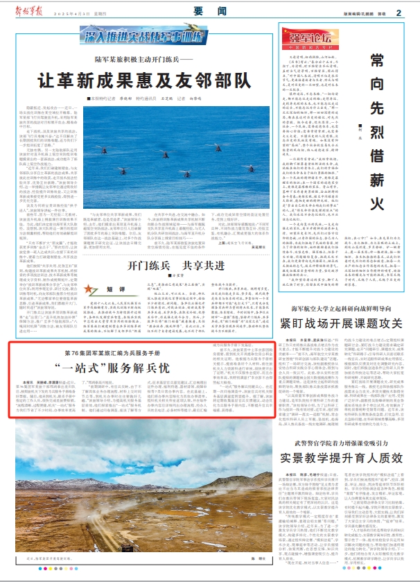 “一站式”服务解兵忧暖兵心。在近期一次问卷调查中,该旅官兵对机关服务基层满意度明显提升。据了解,该旅将定期收集基层官兵反馈建议,动态优化为兵服务手册内容,不断提升官兵幸福感、获得感。