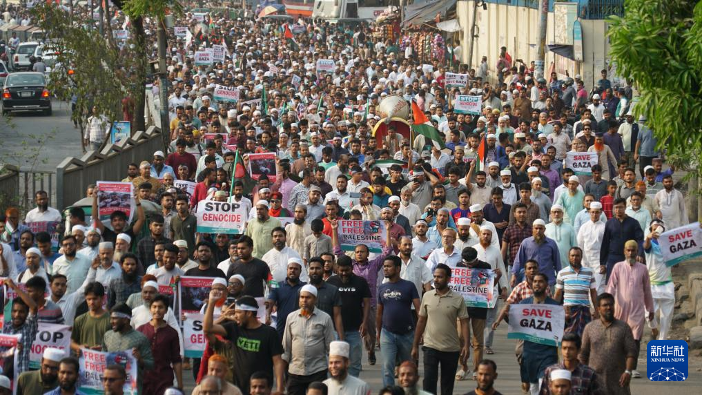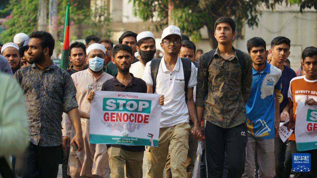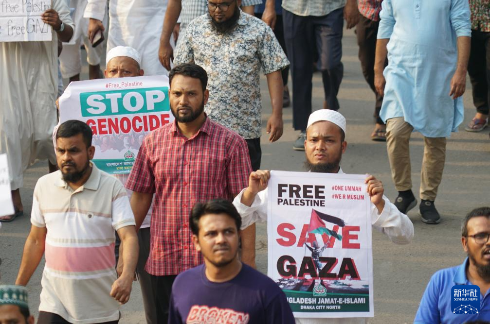 4月7日,人们在孟加拉国首都达卡参加声援巴勒斯坦的游行。