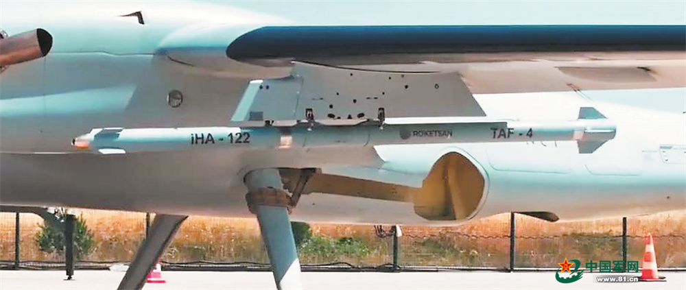 今年3月,土耳其的TB3无人机发射了一枚IHA-122超声速导弹,在另一架无人机的激光引导标示下,精确摧毁50千米外一个36平方米的海上浮动目标。据外媒报道,IHA-122超声速导弹实际上是制导火箭弹,是Roketsan公司所研制系列制导火箭弹中的一种。