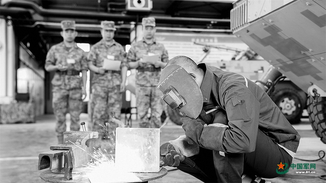 前不久,新疆军区某部组织专业技能岗位文职人员面试。图为焊工岗位考生进行实操。岳 鹏摄