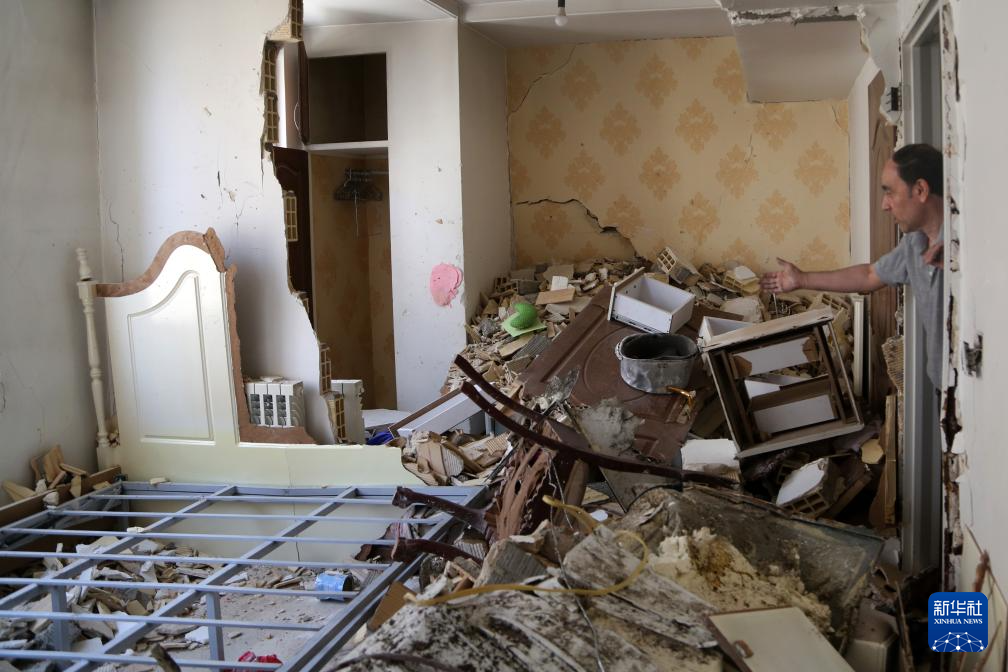 6月25日,在伊朗德黑兰,一名男子查看在以色列空袭中损毁的房屋。新华社发