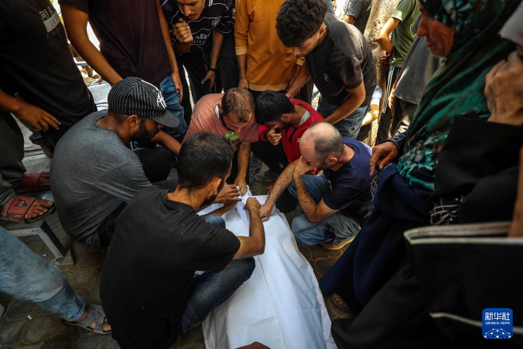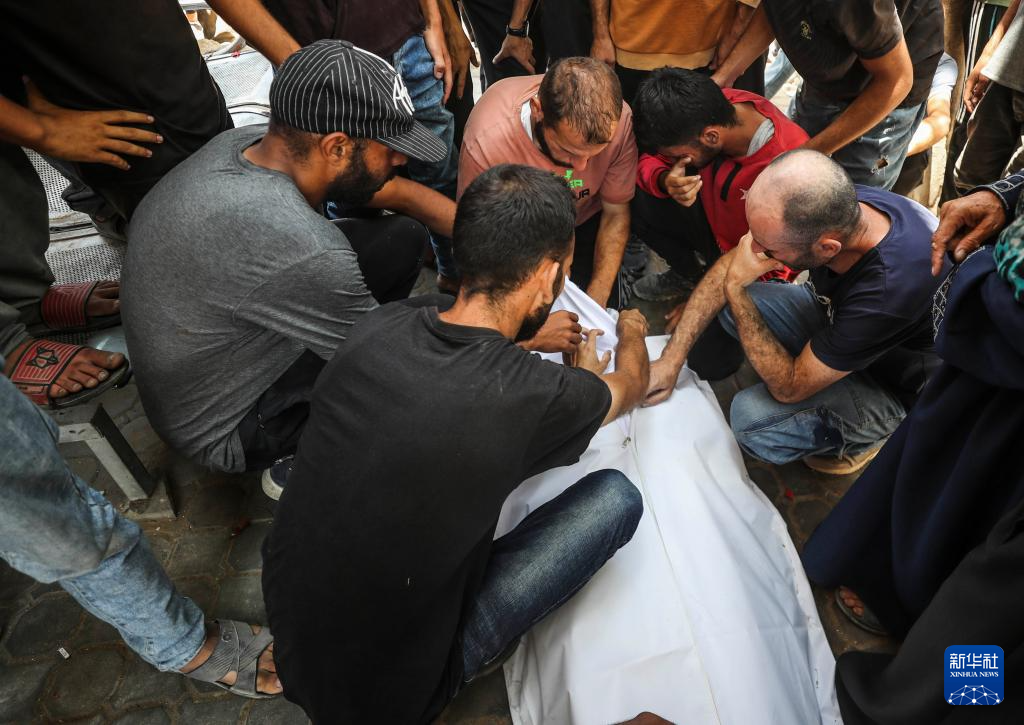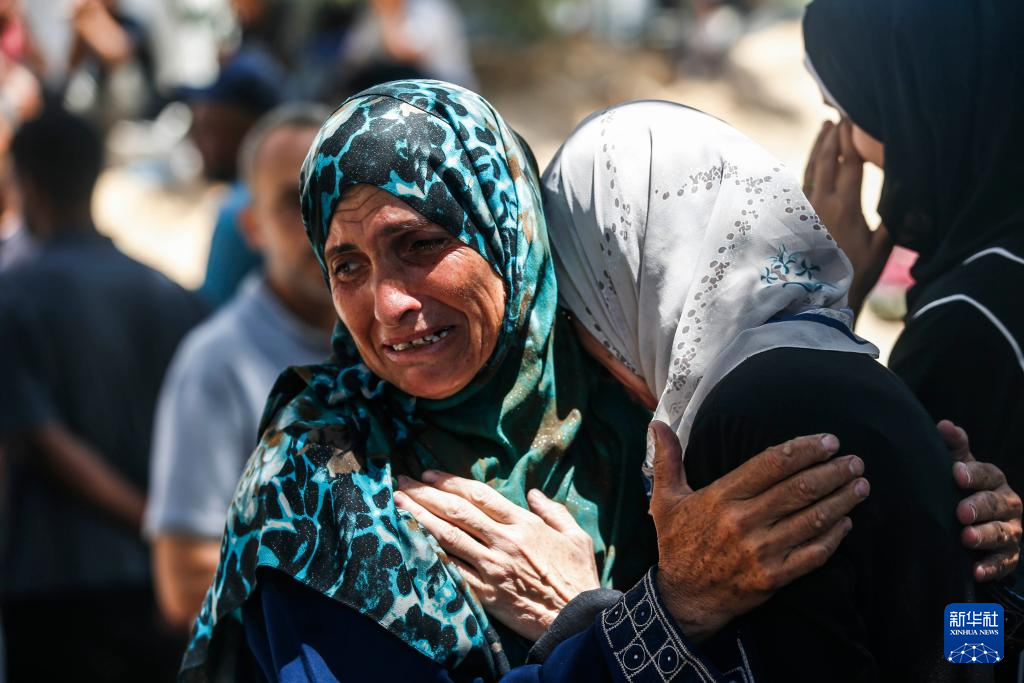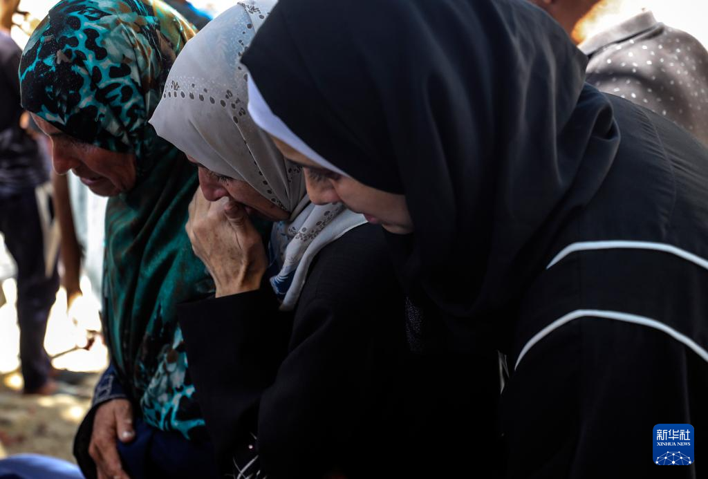 6月25日,巴勒斯坦人在加沙城一所医院悼念以军袭击中的遇难者。