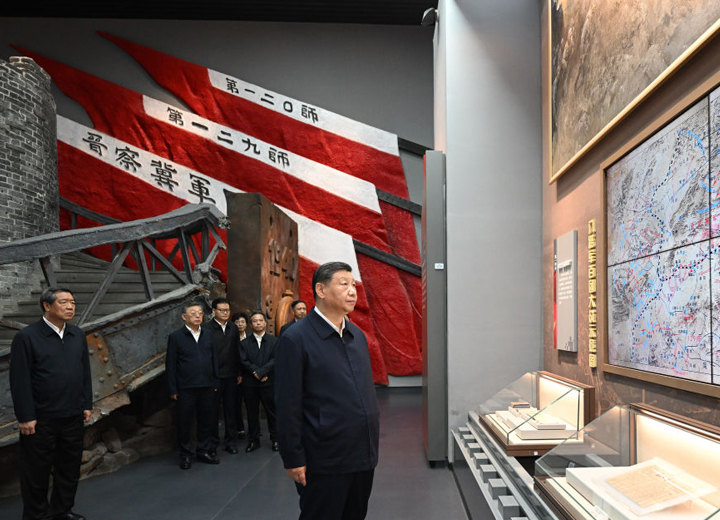 7日下午,习近平总书记在山西省阳泉市考察。他来到百团大战纪念碑广场,向百团大战烈士敬献花篮,参观百团大战纪念馆,缅怀抗战烈士英雄事迹,重温中国共产党领导抗日军民同仇敌忾、勇御外侮的光辉历史,了解当地开展革命历史教育、传承弘扬伟大抗战精神等情况。