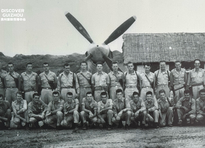 “飞虎队”队员在黄平旧州机场合影。(图/黄平旧州机场提供)