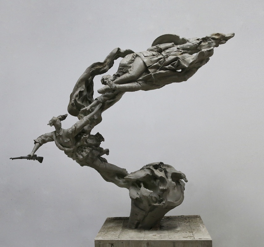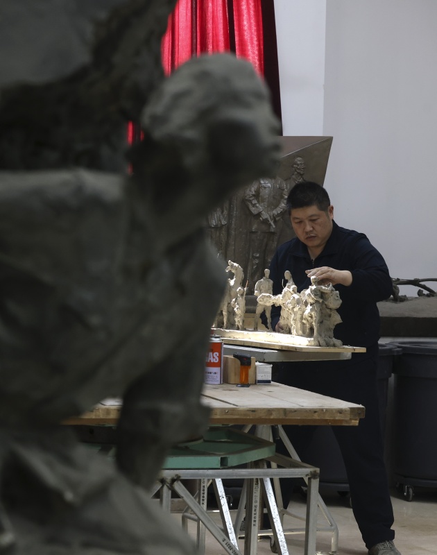 这是解放军文工团雕塑创作员郎钺参与创作的雕塑《前赴后继》。新华社发