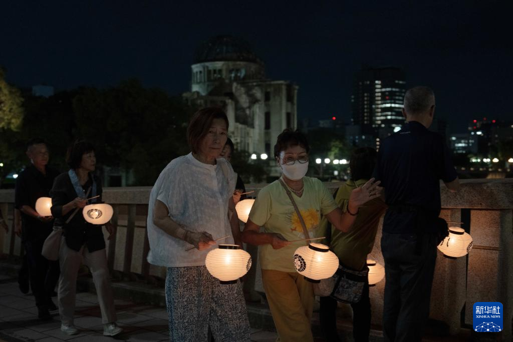 8月5日,为悼念原子弹轰炸遇难者,民众在日本广岛的和平纪念公园附近提灯巡游。