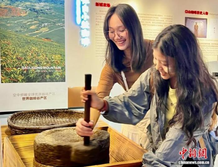图为8月6日,中缅青年走访保山咖啡博物馆。时文枝 摄