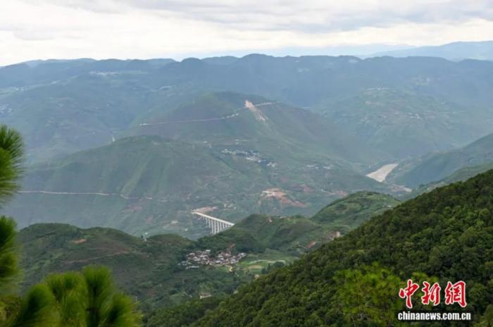 图为7月24日,站在保山市龙陵县松山上远眺高黎贡山上蜿蜒曲折的滇缅公路。中新社记者 李嘉娴 摄