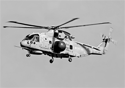 英国“梅林鸦巢”舰载预警直升机。资料图片
