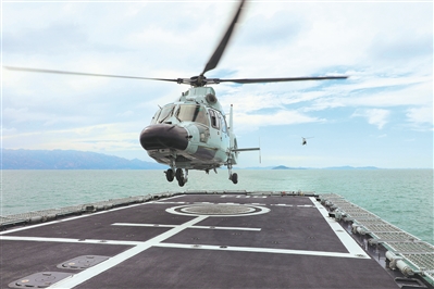 日前,海军某支队组织海上训练。图为舰机协同训练。解放军报特约通讯员王光杰摄