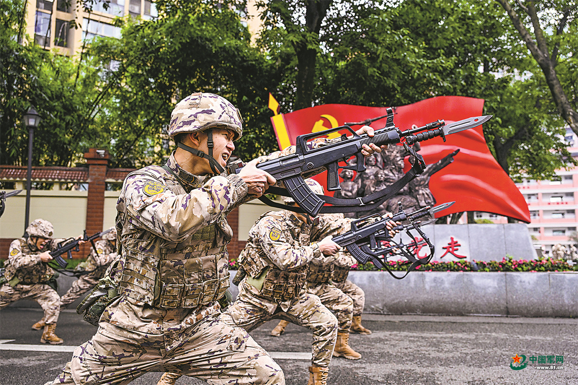 武警重庆总队某支队官兵开展刺杀训练。 刘 亢摄