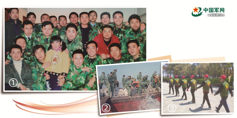 图①:2008年春节,郑菘芳(前排左三)与“兵爸爸”们聚会时合影。方贤松摄