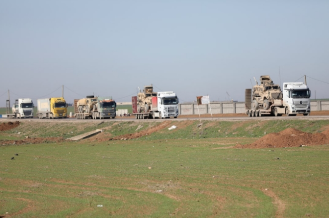 报道称,据目击者称,数十辆卡车于23日上午离开了叙利亚哈塞克省卡斯拉克军事基地,其中一些卡车上载有装甲车。路透社随后发布的画面显示,这些卡车沿着哈塞克省卡米什利市郊的一条高速公路行驶。