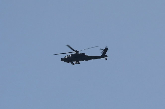 当地时间2月23日,一架美军直升机从叙利亚卡斯拉克军事基地撤离。 图源:外媒报道配图