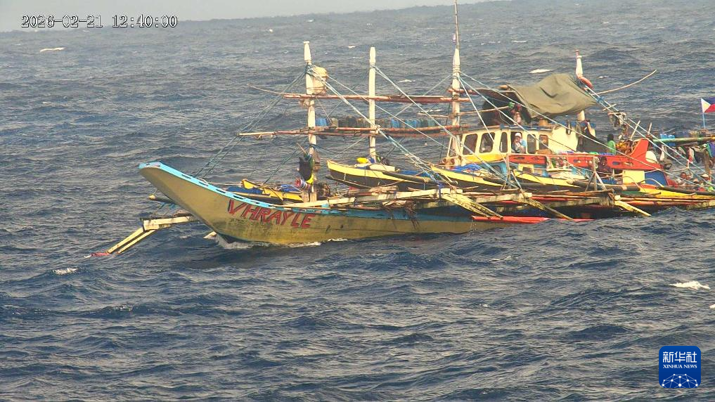 2月21日,菲律宾多艘船只集结侵闯我黄岩岛领海,被我海警万山舰编队依法驱离。这是菲船只在冲闯我黄岩岛领海,其中多名船员疑似在拍摄我海警舰艇。