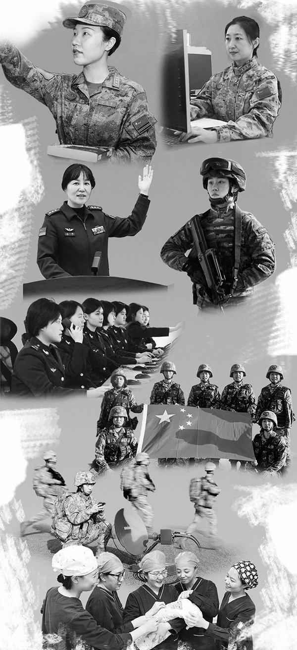 解放军和武警部队部分全国三八红旗手(集体)、全国巾帼文明岗风采。美术设计:向修红